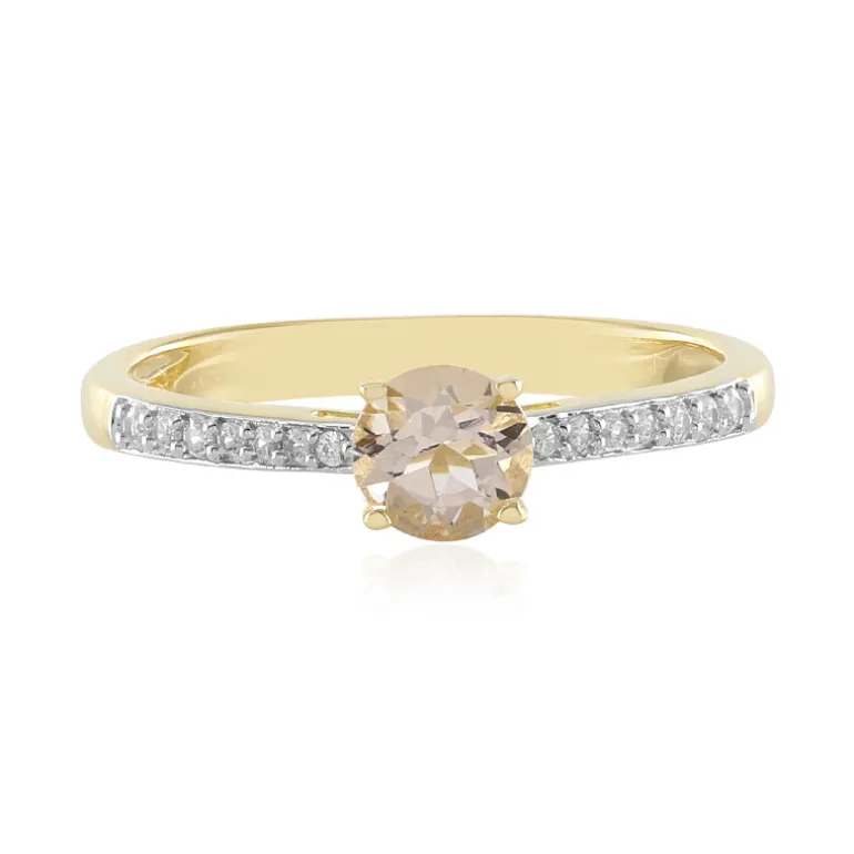 Dieser bezaubernde Ring präsentiert einen ruhigen Morganit aus Madagaskar von 0,45 Karat im Rundschliff, eingebettet in ein elegantes, vergoldetes 925er Sterling Silberband. Akzentuiert durch glitzernde kambodschanische Zirkone von insgesamt 0,12 Karat, fügen die seitlichen Steine genau den perfekten Hauch von Funkeln hinzu und verstärken die Pfirsichtöne des zentralen Edelsteins. Dieser Ring ist ideal, um jedem Outfit einen Hauch von Wärme zu verleihen, und kann von morgens bis abends getragen werden. Er verkörpert Romantik und Weiblichkeit und ist die richtige Wahl für einen besonderen Anlass oder ein liebevolles Geschenk.