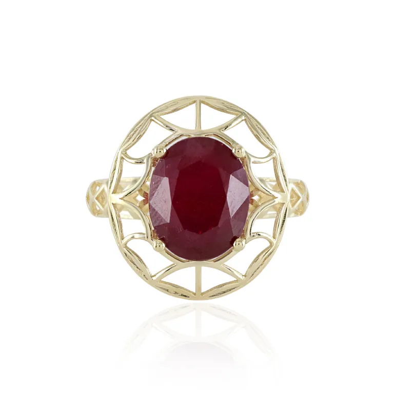 Dieser schicke Madagaskar-Rubinring fängt auf stilvolle Weise die feurige Essenz Madagaskars ein und ist ein Statement der Eleganz. Dieses raffinierte Schmuckstück enthält einen 3,6 Karat schweren Rubin im Ovalschliff in einer Fassung aus 9-karätigem Gelbgold mit einem Gewicht von etwa 1,76 Gramm. Der 27 x 21 mm große Ring versprüht Vintage-Charme und ist perfekt für moderne Liebhaber, die einen Hauch von klassischem Charme suchen. Kombinieren Sie ihn mit Ihrer Abendgarderobe, um Ihrem Ensemble einen Hauch von königlicher Majestät zu verleihen.