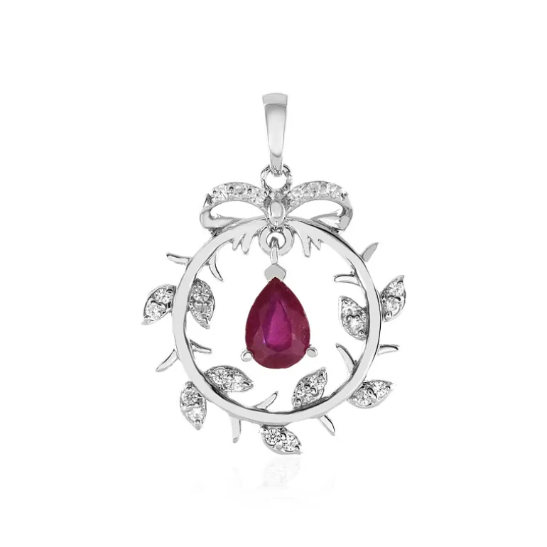 Dieser atemberaubende Anhänger mit einem Madagaskar-Rubin von 0,918 Karat im Birnenschliff ist in schimmerndes, platiniertes Sterlingsilber gefasst. Akzentuiert von 24 tansanischen Zirkonen im Rundschliff, strahlt dieses elegante Stück Raffinesse aus. Dieser Anhänger eignet sich perfekt für eine elegante Abendgarderobe oder um einen Hauch von Klasse zu einem Business-Look hinzuzufügen und wertet jedes Outfit mit seiner leuchtenden Farbe und seinem exquisiten Design auf.