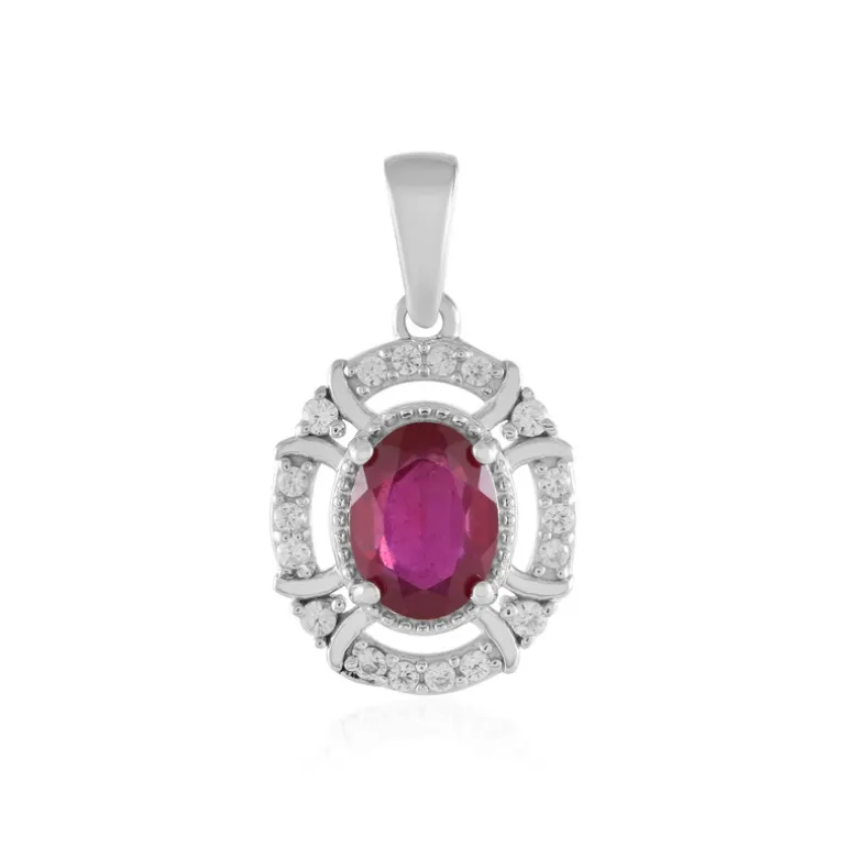 Dieser exquisite Anhänger zeigt einen atemberaubenden Rubin aus Madagaskar im Ovalschliff von 1,605 Karat, der elegant von kambodschanischen Zirkonen umgeben ist. Der aus 925er Sterlingsilber gefertigte und für zusätzlichen Glanz plattierte Anhänger misst 22 x 13 mm. Dieses Schmuckstück eignet sich sowohl für formelle Kleidung als auch für Abendgarderobe und verleiht jedem Outfit einen Hauch von Raffinesse.