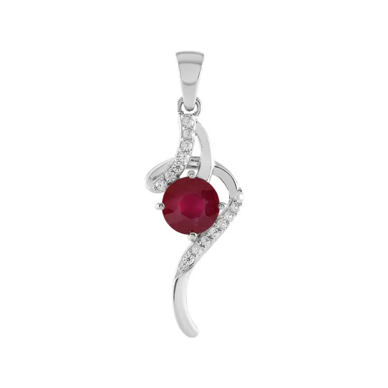 Entdecken Sie die Faszination Madagaskars mit diesem fesselnden Rubin-Anhänger. Ein glänzender Rubin von 2,473 Karat im Rundschliff ist das Herzstück des Anhängers, der in einem modernen, wirbelnden Design aus platiniertem 925er Sterlingsilber eingefasst ist. Fünfzehn funkelnde Zirkonsteine aus Kambodscha im Rundschliff mit einem Gesamtgewicht von 0,299 ct. verleihen diesem Anhänger mit den Maßen 39 x 14 mm einen Hauch von Raffinesse. Ob für einen legeren Brunch oder eine elegante Abendveranstaltung, dieser Anhänger ist ein vielseitiges Accessoire für Ihre Garderobe.