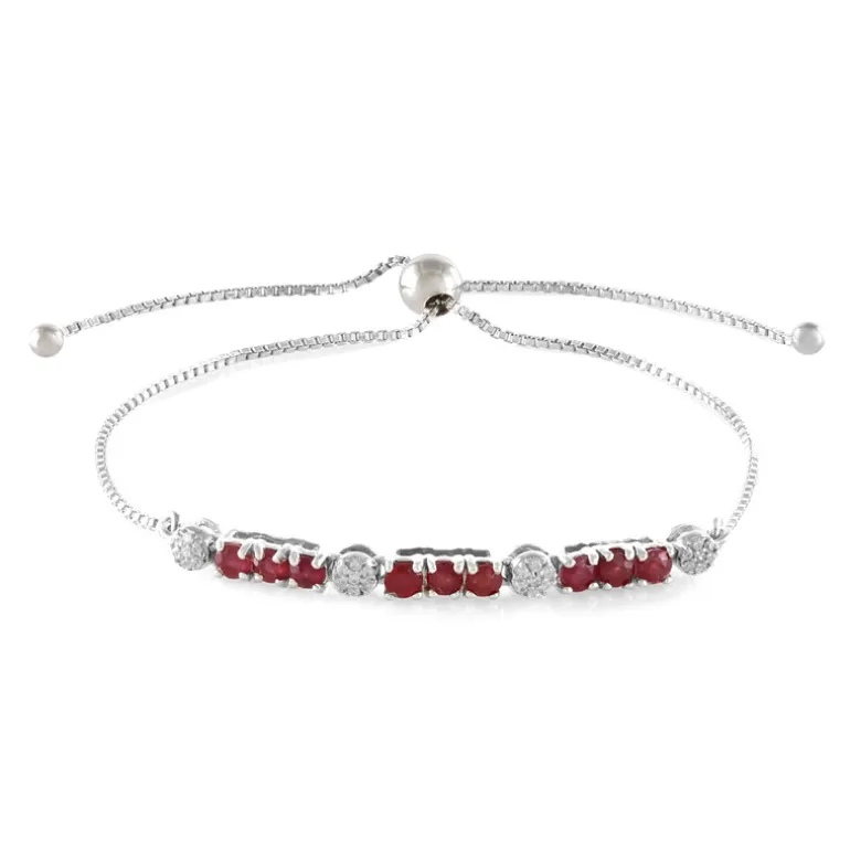 Entdecken Sie die Eleganz dieses silbernen Armbands mit Madagaskar-Rubinen, das in der Länge von 10 bis 25,5 cm verstellbar ist und somit perfekt passt. Die leuchtenden Rubine sind wunderschön in glitzerndes Silber gefasst und machen es zu einem idealen Accessoire für legere und formelle Anlässe. Kombinieren Sie es mit einem eleganten Abendkleid oder einem schicken Büro-Outfit, um Ihrem Look einen Hauch von Raffinesse zu verleihen.