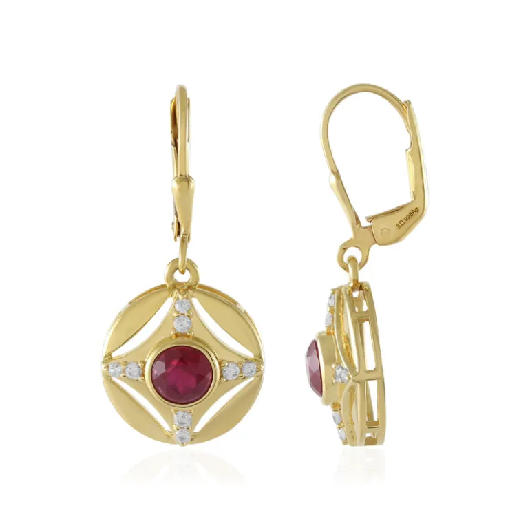 Wir präsentieren unsere atemberaubenden Ohrringe mit strahlenden Rubinen aus Madagaskar, die fachmännisch im runden Brillantschliff geschliffen sind. Ergänzt durch funkelnde kambodschanische Zirkone sind diese Ohrringe aus 925er Sterlingsilber mit einer luxuriösen Goldplattierung gefertigt. Sie eignen sich perfekt für jeden eleganten Anlass und verleihen sowohl lässigen als auch formellen Outfits einen Hauch von Raffinesse. Mit diesem exquisiten Paar können Sie Ihren Stil mühelos aufwerten.