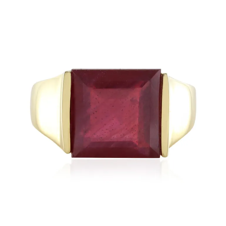 Entdecken Sie die Faszination Madagaskars mit diesem atemberaubenden Ring aus 925er Sterlingsilber, der für einen Hauch von Luxus aufwändig vergoldet wurde. In der Mitte des Rings befindet sich ein prächtiger Rubin im Quadratschliff mit 5,85 Karat und einer Größe von ca. 10 mm, der ein Meisterwerk der Eleganz darstellt. Sein satter roter Farbton strahlt aus dem quadratischen Mittelpunkt heraus und wird durch die goldene Wärme des Bandes perfekt kontrastiert. Er eignet sich ideal für Abendveranstaltungen oder als Schmuckstück, das ein klassisches schwarzes Kleid ergänzt oder tagsüber für einen Farbtupfer sorgt.