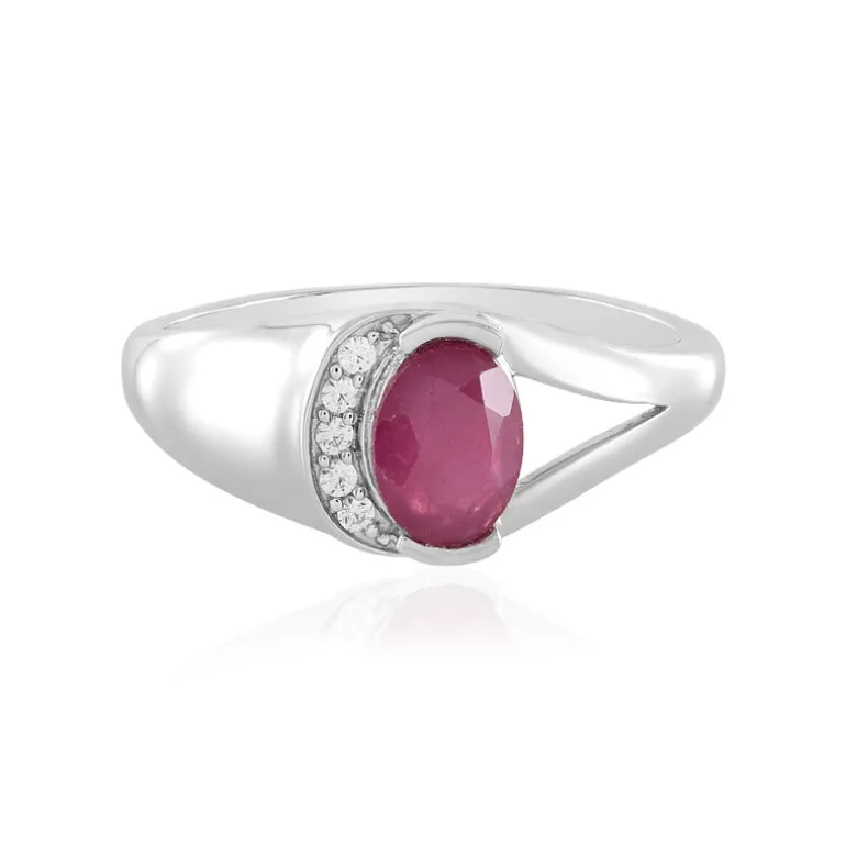 Entdecken Sie den lebendigen Charme dieses platinierten Rings aus Sterlingsilber mit einem atemberaubenden 1,66-karätigen Madagaskar-Rubin im Ovalschliff, der von glitzernden kambodschanischen Zirkonen umrahmt wird. Das elegante Design verbindet moderne Raffinesse mit zeitloser Eleganz. Dieser Ring eignet sich perfekt für den Alltag oder als Farbakzent für die Abendgarderobe und ist eine vielseitige Ergänzung für jede Schmucksammlung.