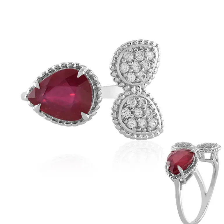 Entdecken Sie die fesselnde Anziehungskraft dieses Rings aus 925er Sterlingsilber, der für zusätzlichen Glanz plattiert und mit einem üppigen 2,667-karätigen tropfenförmigen Madagaskar-Rubin geschmückt ist. Flankiert von funkelnden kambodschanischen Zirkonen mit einem Gesamtgewicht von 0,336 ct, zeigt dieses atemberaubende Stück ein raffiniertes Halo-Design, das den brillanten Rubin in der Mitte hervorhebt. Perfekt für die Abendgarderobe oder besondere Anlässe, verleiht er jedem Outfit einen Hauch von romantischem Rot. Gönnen Sie sich diese Verschmelzung von modernem Design und zeitloser Eleganz.