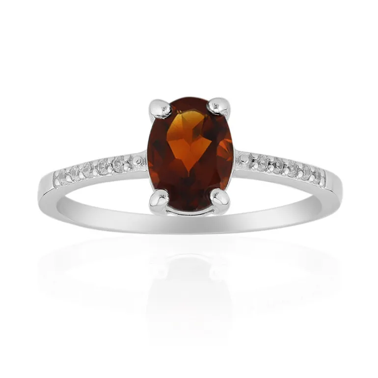 Entdecken Sie die warme Anziehungskraft dieses Rings aus Sterlingsilber, der einen glänzenden brasilianischen Madeira-Citrin von 0,63 Karat im Ovalschliff präsentiert, flankiert von einer zarten Reihe funkelnder Zirkone aus Tansania. Der schwüle, satte Braunton des Citrins steht in schönem Kontrast zum kühlen Glanz des 925er Sterlingsilberbandes und macht ihn zu einem vielseitigen Schmuckstück, das sich für den Alltag oder besondere Anlässe eignet. Kombinieren Sie ihn mit erdfarbenen Outfits für einen harmonischen Look oder mit kontrastierenden Farben für ein auffälliges Statement.