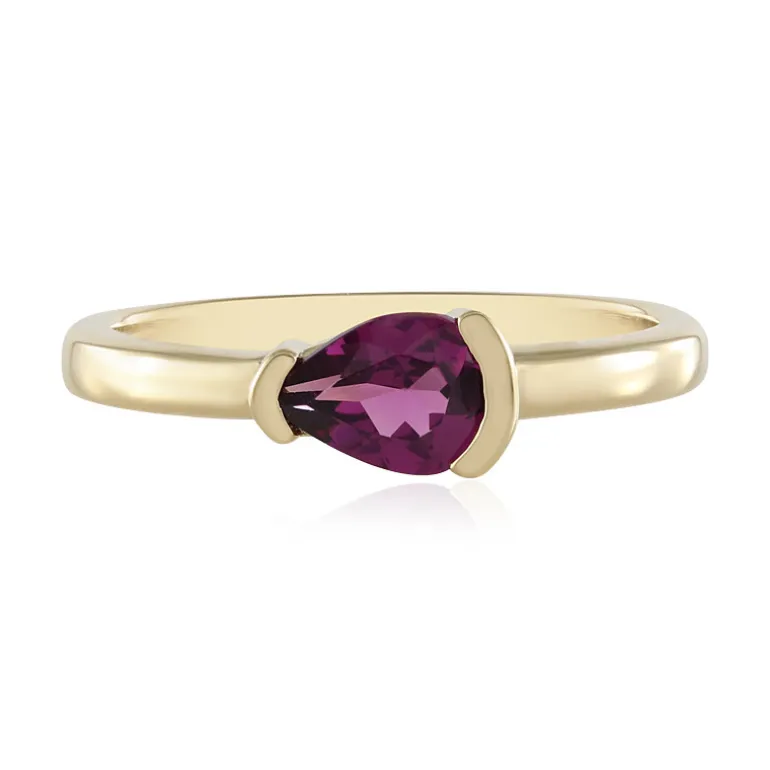Magenta-Granat im Birnenschliff Ring aus vergoldetem Silber