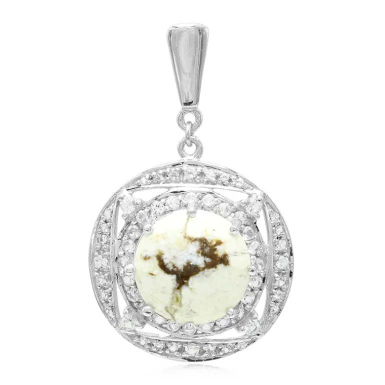 Entdecken Sie Eleganz mit diesem atemberaubenden Magnesit-Silberanhänger. Mit einem fesselnden Magnesit-Cabochon von 8,64 Karat und funkelnden weißen Topas-Akzenten strahlt dieses Stück Raffinesse aus. Perfekt für die Abendgarderobe oder als Blickfang zu jedem Anlass. Kombinieren Sie ihn mit einem eleganten schwarzen Kleid oder einer schicken Bluse für einen unvergesslichen Look.