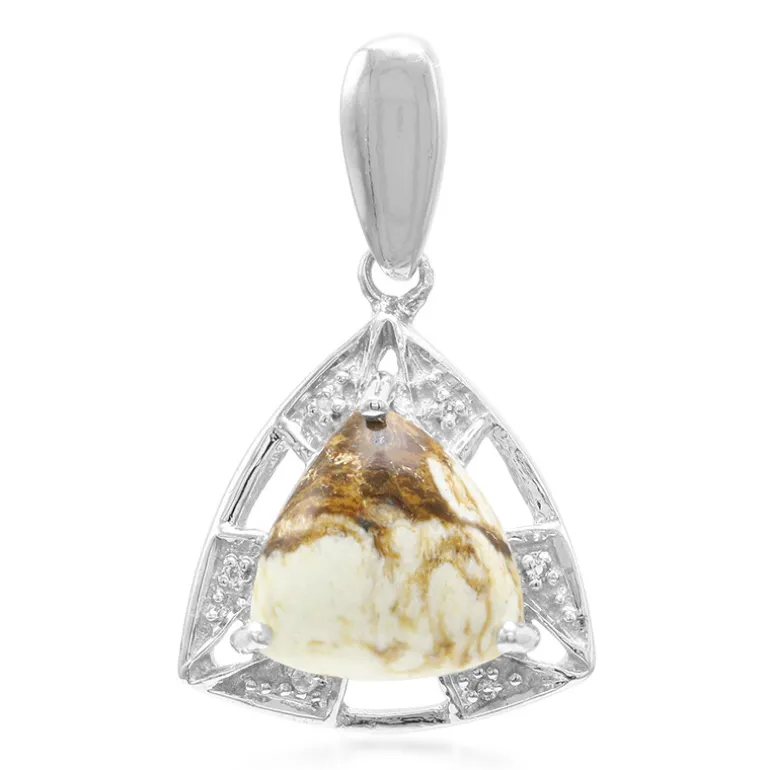 Dieser Anhänger aus Sterlingsilber strahlt mit seinem brasilianischen Magnesit-Cabochon von 4,91 Karat einen Hauch von Raffinesse aus. Umgeben von funkelnden weißen Topasen mit einem Gesamtgewicht von 0,023 ct misst dieses elegante Stück 30 x 17,5 mm und lässt sich elegant an jeder Kette tragen. Perfekt, um Ihrem Alltagsoutfit einen Hauch von Klasse zu verleihen oder als auffälliger Akzent für besondere Anlässe.