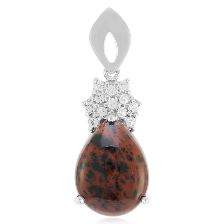 Entdecken Sie die warme Anziehungskraft dieses Anhängers aus 925er Sterlingsilber, gekrönt von einem tropfenförmigen Cabochon aus Mahagoni-Obsidian. Dieser natürliche Edelstein mit 7,18 Karat stammt aus den USA und funkelt mit 0,322 Karat brasilianischem Weißtopas, der seine Eleganz unterstreicht. Dieser Anhänger eignet sich sowohl für legere Ausflüge als auch für formelle Anlässe und verkörpert Ihren einzigartigen Stil. Kombinieren Sie ihn mit einer eleganten Kette, um ein Tagesoutfit aufzuwerten, oder heben Sie ihn bei einer Abendveranstaltung von einem kleinen schwarzen Kleid ab.