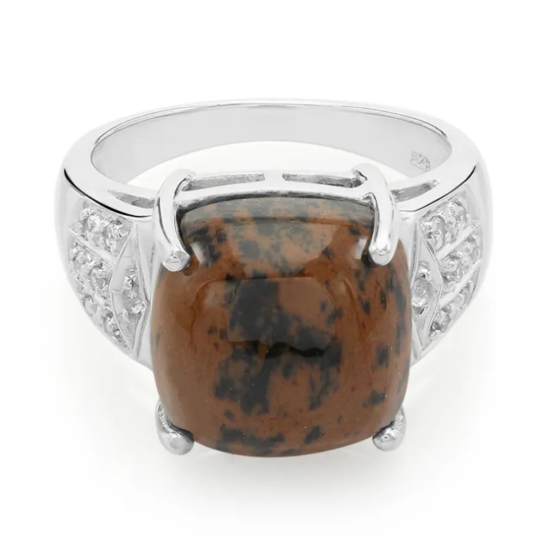 Ein auffälliges Stück ist dieser Ring mit einem atemberaubenden 6,72ct Mahagoni-Obsidian aus den Vereinigten Staaten. Der zentrale Edelstein ist in 925er Sterlingsilber mit einem antiken Kissen-Cabochon-Schliff gefasst und wird von funkelnden weißen Topasen aus Brasilien flankiert. Das elegante Design fängt die antike Essenz ein und fügt einen modernen Twist hinzu, was es zu einer vielseitigen Ergänzung für jedes Outfit macht. Ganz gleich, ob Sie sich für einen Abend herausputzen oder Ihrem Alltagsoutfit einen Hauch von Raffinesse verleihen möchten, dieser Ring wird mit Sicherheit Bewunderung hervorrufen.