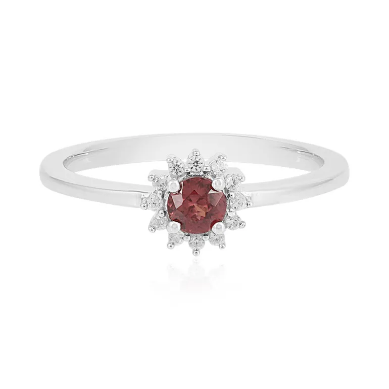 Lassen Sie sich von der warmen Ausstrahlung dieses Rings aus 925er Sterlingsilber verführen, der für ein glänzendes Finish plattiert wurde. Das Herzstück ist ein fesselnder Mahagoni-Zirkon von 0,405 Karat aus Kambodscha, exquisit geschliffen in runder Brillantform und mit einer Größe von etwa 4 mm. Dieses reiche Herzstück ist von 12 funkelnden Zirkonen mit einem Gesamtgewicht von 0,111 ct umgeben, von denen jeder im Präzisionsschliff geschliffen wurde, um das Licht aus jedem Winkel einzufangen. Mit einem Gesamtgewicht von 0,516 ct hat dieser Ring eine Größe von 21 x 19 mm und eignet sich perfekt, um jedem Anlass einen Hauch von Eleganz zu verleihen. Egal, ob Sie sich für eine Abendveranstaltung herausputzen oder Ihre Alltagskleidung ergänzen, dieses schicke Stück kombiniert Raffinesse mit einer Farbe, die das ganze Jahr über vielseitig ist.