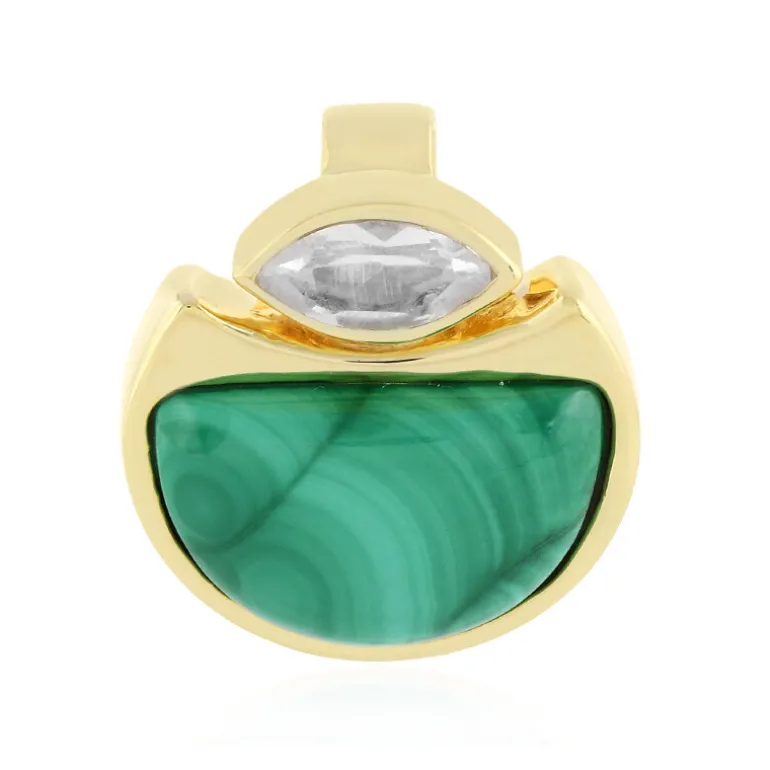 Schicker vergoldeter Anhänger aus Malachit und Quarz, DR Kongo 8ct