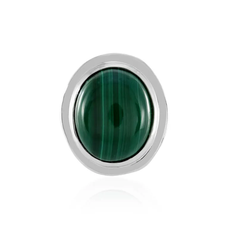Entdecken Sie die Faszination des tiefen Grüns der Wälder mit diesem raffinierten ovalen Malachit-Cabochon-Anhänger. Der aus der Demokratischen Republik Kongo stammende 6,587 ct. große Edelstein ist in platiniertem 925er Sterlingsilber mit einem Gesamtgewicht von ca. 1,55 g eingefasst. Mit einer Größe von 16×14 mm ist der Anhänger ein echter Hingucker bei jeder Gelegenheit. Er ist ideal, um Ihrem Ensemble einen Hauch von naturinspirierter Eleganz zu verleihen, und eignet sich perfekt für einen eleganten Tag oder einen glamourösen Abend.