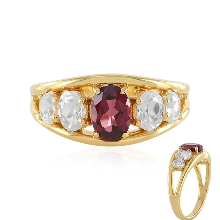 Malawi Granat & Zirkon Goldplattierter Silberring, 2,28ct