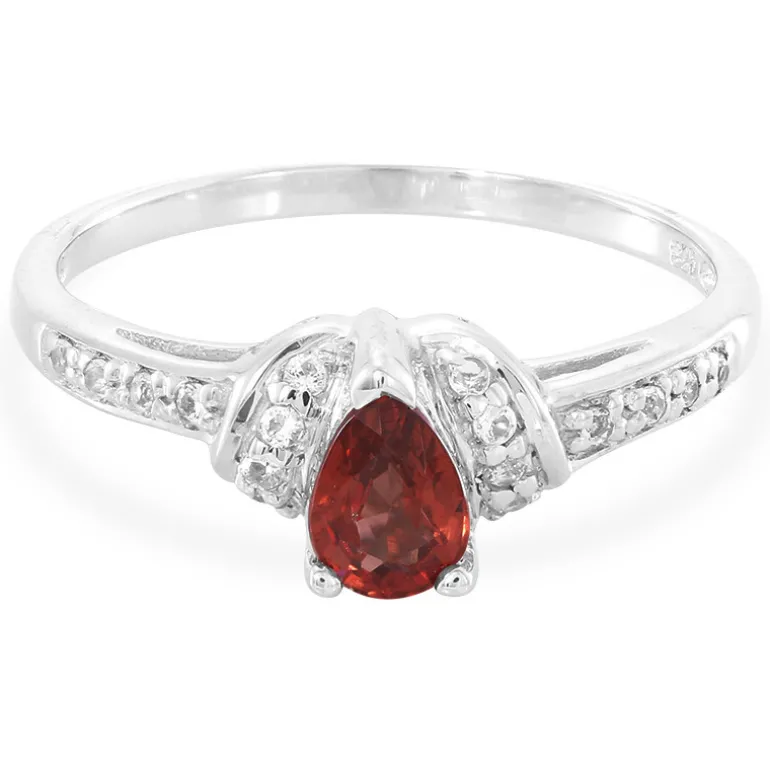 Entdecken Sie die Anziehungskraft dieses tansanischen Malaya-Granatrings, der einen faszinierenden 0,46-karätigen tropfenförmigen Edelstein präsentiert. Der elegante Granat in der Mitte wird von 16 funkelnden weißen Topasen aus Brasilien akzentuiert, die in hochwertigem 925er Sterlingsilber gefasst sind. Dieses raffinierte Schmuckstück fängt die warmen Farbtöne des Granats ein und eignet sich perfekt, um die Abendgarderobe aufzuwerten oder dem Alltagsoutfit einen Hauch von Klasse zu verleihen. Mit einem Gesamtkaratgewicht von 0,557 ct ist dieser Ring ein reizvolles Geschenk oder eine wertvolle Ergänzung für jede Schmucksammlung.