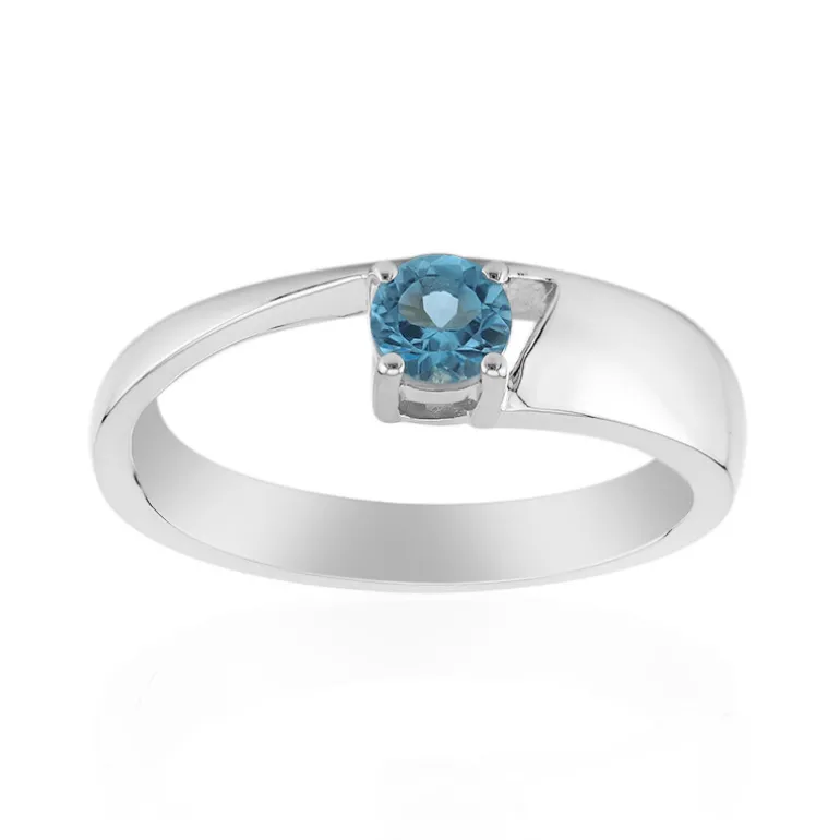 Dieser Ring präsentiert einen wunderschön facettierten brasilianischen Marambaia-Topas von 0,264 Karat, der für seine strahlend himmelblauen Farbtöne bekannt ist, gefasst in poliertem 925er Sterlingsilber. Die Schlichtheit des rund geschliffenen Edelsteins, eingebettet in ein schlankes Silberband, macht dieses Schmuckstück zu einer vielseitigen Ergänzung für jede Sammlung. Es ist nicht nur ein Schmuckstück, sondern auch ein Gesprächsthema, das sich sowohl für zwanglose Ausflüge als auch für berufliche Anlässe eignet. Kombinieren Sie es mit Ihrem Lieblingsensemble für einen Hauch von Eleganz.
