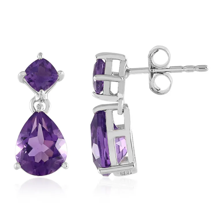 Enthüllen Sie die tiefviolette Eleganz dieser Ohrringe aus Sterlingsilber, die mit 3,08 Karat marokkanischen Amethysten verziert sind. Die Kombination aus Teardrop- und antiken Kissenschliffen sorgt für einen raffinierten, mehrschichtigen Look. Die mit Platin plattierten Ohrringe wiegen ca. 1,69 g und sind 17 mm groß. Sie sind der perfekte Akzent für jedes Outfit. Sie eignen sich sowohl für den eleganten Alltag als auch für einen glamourösen Abend und können mit ihrem leuchtenden Farbton eine Vielzahl von Stilen anspruchsvoller Schmuckliebhaberinnen ergänzen.