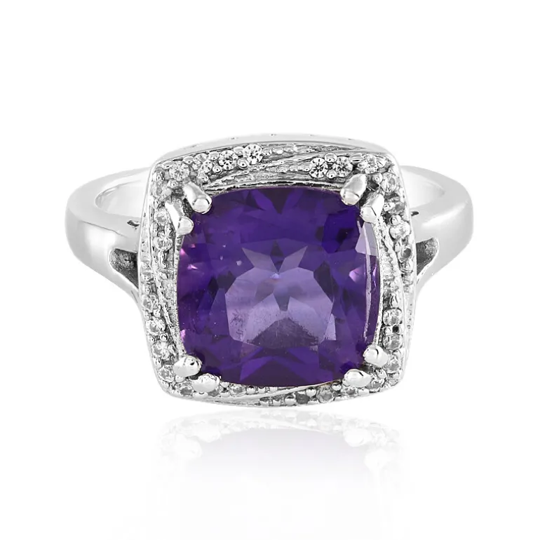 Marokkanischer 3,51ct Amethyst Platin-Plattierter Silber Ring