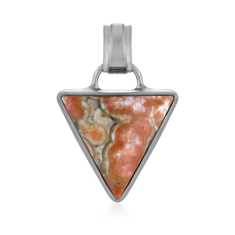Tauchen Sie ein in die Faszination des Ozeans mit unserem Madagaskar Ozean Jaspis Anhänger. Dieses exquisite Schmuckstück präsentiert einen faszinierenden 5-karätigen Cabochon aus Ozean-Jaspis im Trillant-Schliff, der aus Madagaskar stammt und in hochwertigem 925er Sterlingsilber mit einer Platinveredelung für zusätzlichen Glanz eingefasst ist. Mit einer Größe von 25 x 17 mm besticht dieser Anhänger durch sein Muster, das an die natürliche Schönheit des Meeres erinnert. Er ist ein ideales Accessoire, um Ihrem Outfit einen Hauch von Raffinesse zu verleihen und eignet sich sowohl für zwanglose Ausflüge als auch für besondere Anlässe.