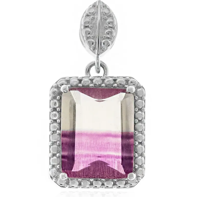 Genießen Sie die Faszination dieses atemberaubend gearbeiteten Anhängers mit einem 4,76 Karat schweren, mehrfarbigen Fluorit-Edelstein. Die bezaubernden Regenbogentöne des Edelsteins werden durch den einzigartigen achteckigen Stufenschliff besonders hervorgehoben und durch den subtilen Schimmer des 925er Sterlingsilbers ergänzt. Dieses exquisite Stück misst 23×12 mm, der Fluorit stammt aus China und zeigt in jeder Facette Raffinesse. Dieser Anhänger eignet sich sowohl für zwanglose Brunchs als auch für Gala-Dinner und sorgt bei jeder Veranstaltung für Gesprächsstoff.
