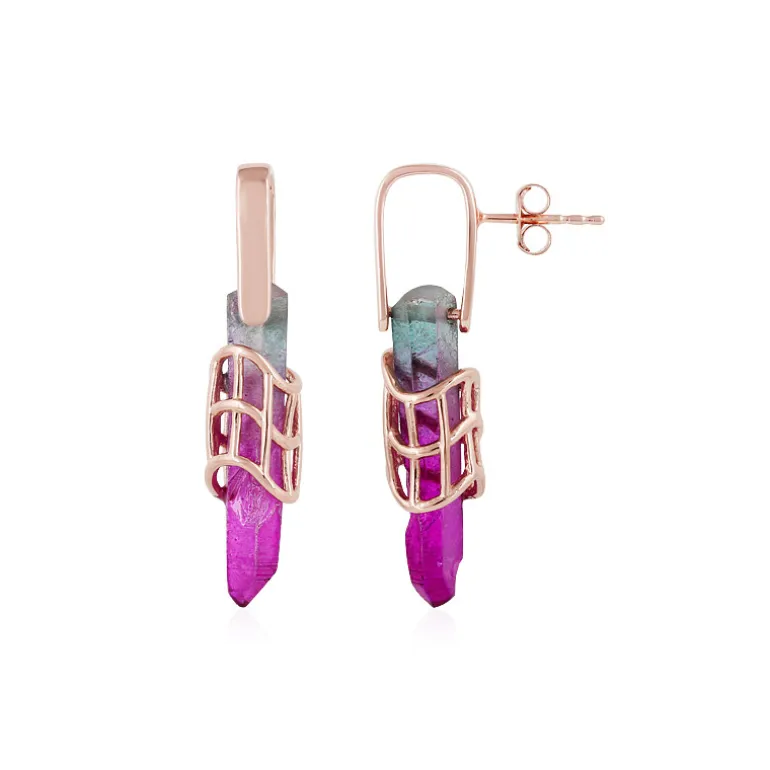 Multicolor Quarz Ohrringe aus roséfarbenem Silber