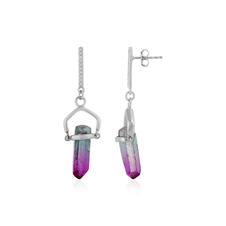 Multicolor Quarz Sterling Silber Ohrringe, Modernes Tropfen Design