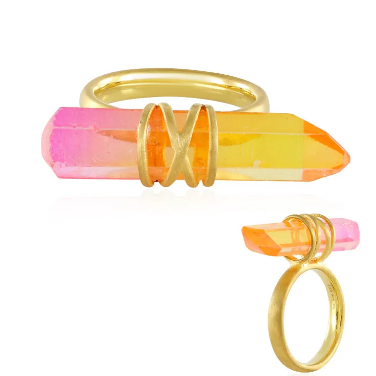 Vibrant Multicolor Quarz vergoldeter Ring, MONOSONO
