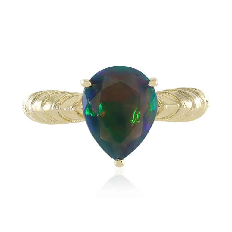 Entdecken Sie die bezaubernde Anziehungskraft des Mezezo Opal Goldrings. Dieser Ring mit einem 1,17-karätigen äthiopischen Opal im Birnenschliff ist in elegantes 9-karätiges Gelbgold gefasst. Die leuchtenden Farben des Opals machen dieses Schmuckstück zu einer herausragenden Wahl für besondere Anlässe oder für die tägliche Eleganz. Dieser Ring passt sowohl zu formeller Kleidung als auch zu legeren, schicken Ensembles und ist eine zeitlose Ergänzung für jede Schmucksammlung.
