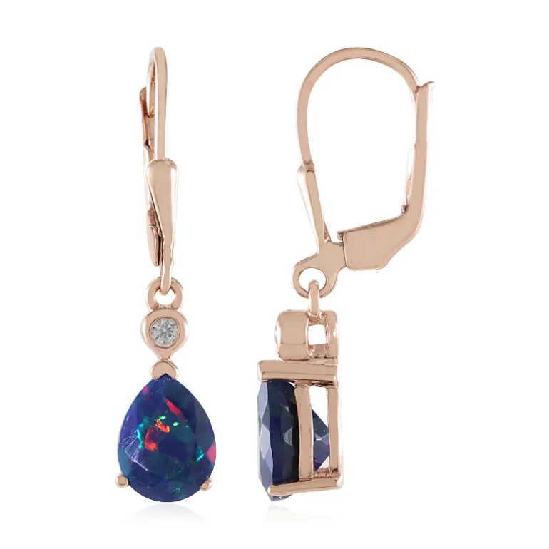 Entdecken Sie die Faszination äthiopischer Mezezo-Opale, die in diesen exquisiten Ohrringen aus 925er Sterlingsilber mit roséfarbenem Vermeil-Finish elegant mit Zirkonen aus Kambodscha kombiniert sind. Die 8×6 mm großen tropfenförmigen Opale strahlen ein bezauberndes Farbenspiel aus, während die runden Zirkone einen Hauch von Funkeln hinzufügen. Diese Ohrringe eignen sich perfekt für die Abendgarderobe oder verleihen einem legeren Ensemble Raffinesse und sind eine zeitlose Ergänzung Ihrer Kollektion.