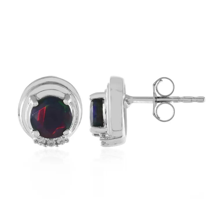 Entdecken Sie die Faszination dieser Mezezo Opal-Ohrringe, die aus 925er Sterlingsilber mit einer eleganten Platinbeschichtung gefertigt sind. Mit 6 mm großen runden äthiopischen Opalen und funkelnden kambodschanischen Zirkon-Akzenten bieten diese Ohrringe ein Gesamtkaratgewicht von 0,99 ct. Sie eignen sich perfekt, um jedem Outfit einen Hauch von Eleganz zu verleihen, und passen sowohl zu legerer als auch zu formeller Kleidung – ideal für jeden Anlass.