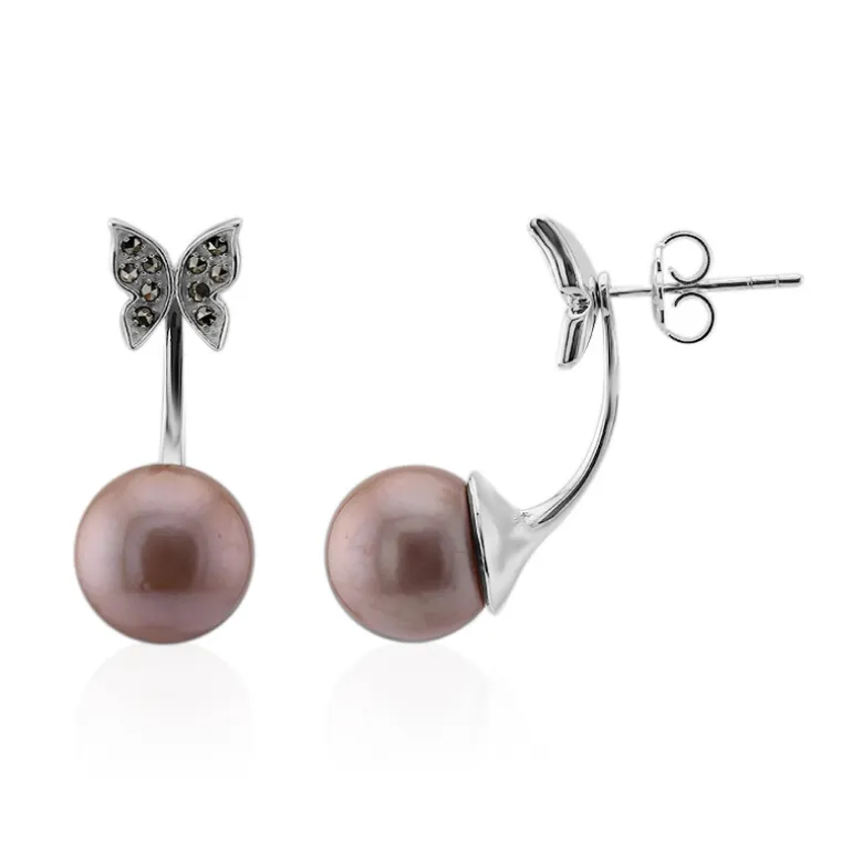 Schicke chinesische Ming-Perlen & Markasit-Silber-Ohrringe