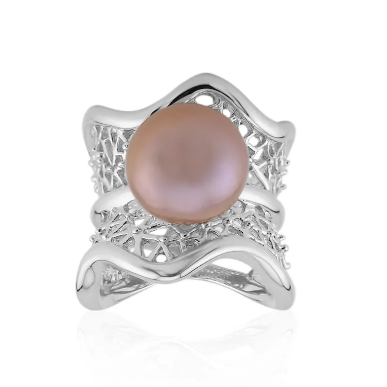 Dieser Ring aus Sterlingsilber präsentiert eine atemberaubende 12 mm große runde chinesische Ming-Perle als Herzstück. Der meisterhaft aus 925er Sterlingsilber gefertigte Ring mit einem ungefähren Gewicht von 8,2 g verfügt über ein kompliziertes, netzartiges Design, das einen stilvoll raffinierten Rahmen bildet. Er eignet sich sowohl für Freizeitkleidung als auch für Abendveranstaltungen und wertet jedes Outfit mit seinem schimmernden Glanz und seiner zeitlosen Eleganz auf.