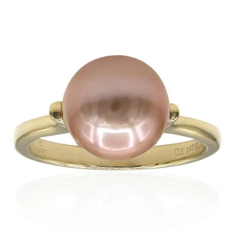 9,5 mm runde Ming-Perle Goldplattierter Silberring