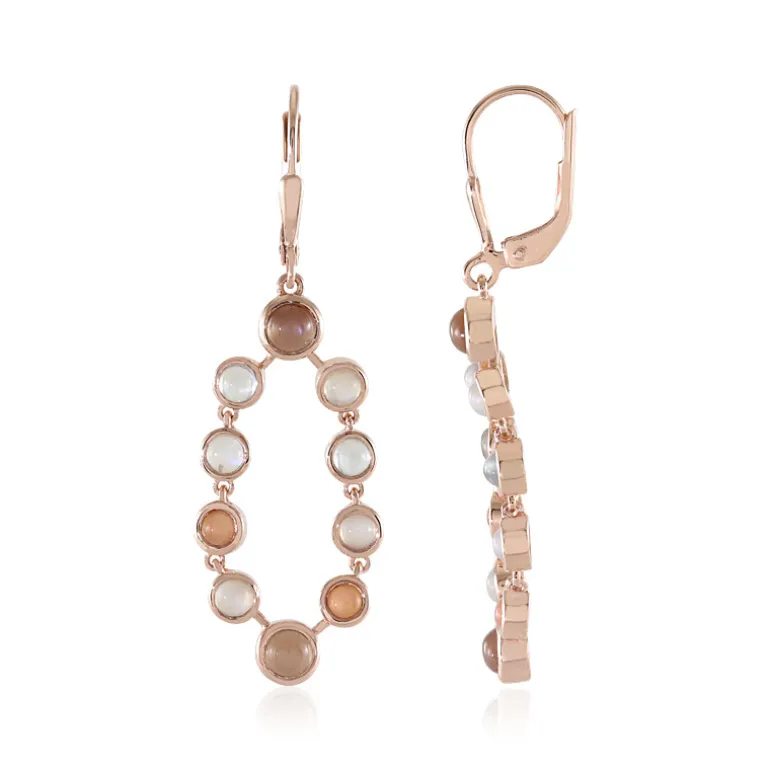 Multicolor Mondstein Rosé Silber Ohrringe, 2,952ct