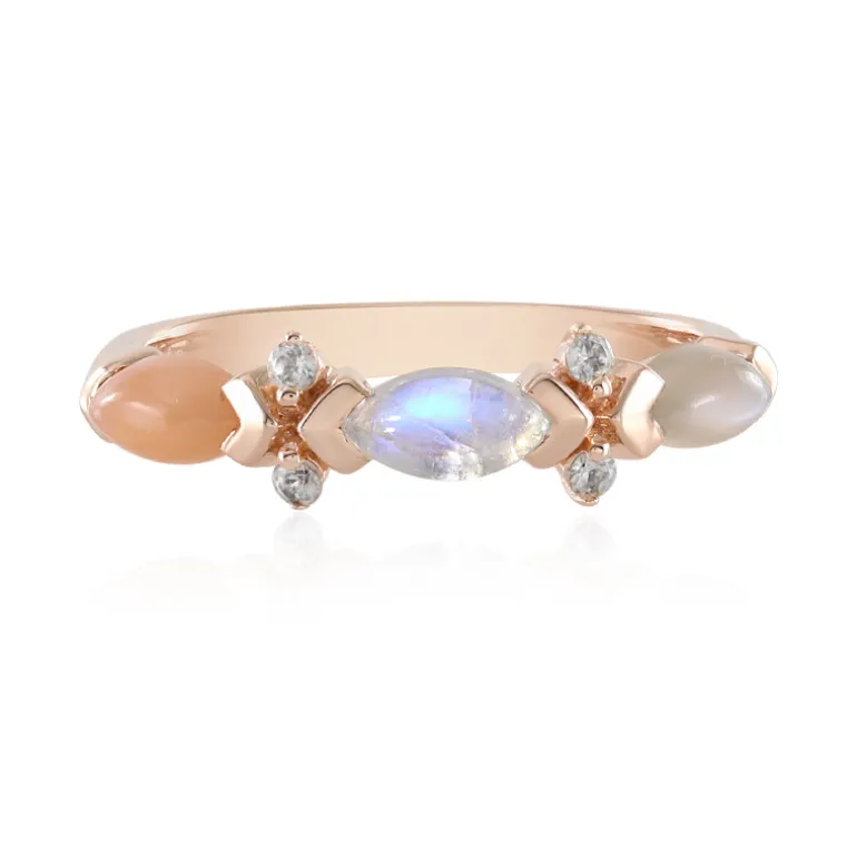Dreifarbiger Ring mit Mondstein und Zirkon, Rose vergoldet, Indien