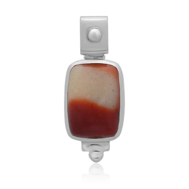 Entdecken Sie diesen bezaubernden australischen Mookaite-Anhänger mit einem beeindruckenden Gewicht von 5,5 Karat und einem Cabochon-Schliff von ca. 14 x 10 mm. Gefertigt aus hochwertigem 925er Sterlingsilber mit einem eleganten Platin-Finish, strahlt dieser Anhänger im antiken Stil zeitlose Eleganz aus. Sein geringes Gewicht von etwa 1,5 Gramm macht ihn zu einem bequemen Begleiter für den ganzen Tag. Dieses vielseitige Schmuckstück eignet sich perfekt, um jedem Outfit einen Hauch von Wärme zu verleihen und kann sowohl Tageslooks aufwerten als auch Abendgarderobe ein einzigartiges Finish verleihen.