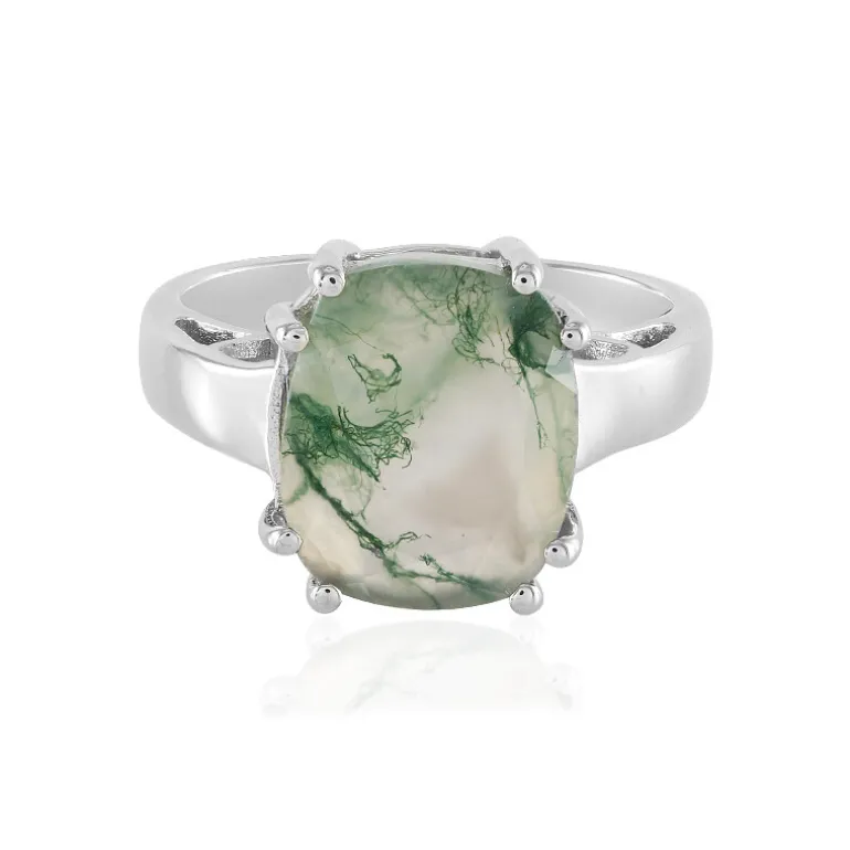 Brasilianischer Moosachat Platinplattierter Silberring, 4,37ct