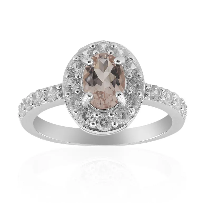 Entdecken Sie die sanfte Anziehungskraft dieses prächtigen Rings aus Sterlingsilber, gekrönt von einem Morganit aus Mosambik im Ovalschliff von 0,597 Karat, umrahmt von funkelnden Zirkon-Akzenten von insgesamt 1,026 Karat. Der Ring ist aus glattem 925er Sterlingsilber gefertigt und mit 20 runden Zirkonen aus Tansania besetzt, die den pfirsichfarbenen Farbton des Morganits noch verstärken. Das elegante Design ist perfekt, um Ihrem Ensemble einen Hauch von Romantik zu verleihen, und passt sowohl zu einem legeren Brunch als auch zu einem formellen Abend. Zelebrieren Sie die besonderen Momente des Lebens mit diesem außergewöhnlichen Schmuckstück, das Anmut und Charme vereint.