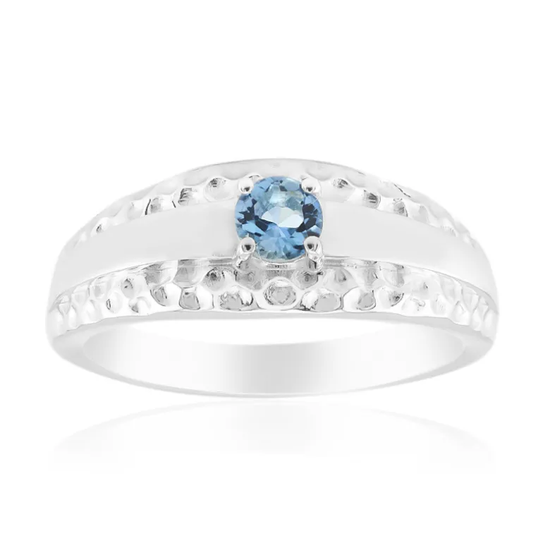 Entdecken Sie Eleganz mit diesem Mosambik-Aquamarin-Ring aus Sterlingsilber. Mit einem Aquamarin im Rundschliff unterstreicht dieses Stück die ruhigen blauen Farbtöne des Edelsteins auf einem strukturierten Silberband. Dieser Ring ist perfekt für einen glamourösen Tag oder einen Abend und passt sowohl zu legeren als auch zu formellen Anlässen. Sein einzigartiges Design macht ihn zu einem auffälligen Accessoire für jede Schmucksammlung.