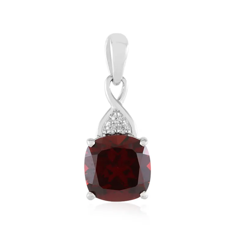 Dieser Anhänger aus Mosambik-Granat mit einem atemberaubenden 3,627-karätigen antiken Edelstein im Kissenschliff strahlt Eleganz aus. Akzentuiert durch kambodschanische Zirkone im Rundschliff und gefasst in 925er Sterlingsilber, strahlt dieses Stück Raffinesse aus. Es eignet sich perfekt für formelle Anlässe oder verleiht dem Alltag einen Hauch von Klasse und lässt sich wunderbar mit Abendgarderobe oder einer einfachen Bluse kombinieren.