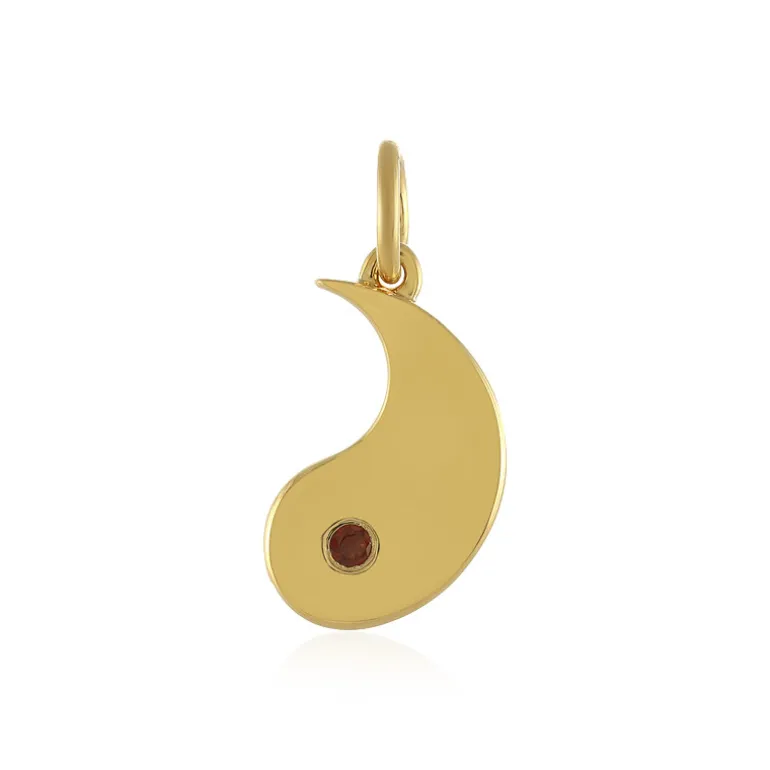Dieser bezaubernde Anhänger besteht aus glänzendem, vergoldetem 925er Sterlingsilber, das von einem einzelnen Mosambik-Granat im Rundschliff akzentuiert wird. Mit einem Gesamtgewicht von 0,043 ct verkörpert dieses Schmuckstück subtile Eleganz. Der Anhänger mit den Maßen 21×10 mm hat eine moderne Halbmondform, die sowohl tagsüber als auch abends getragen werden kann. Kombinieren Sie ihn mit einer lässigen Bluse oder einem Abendkleid, um Ihrem Outfit einen Hauch von Wärme und Farbe zu verleihen.