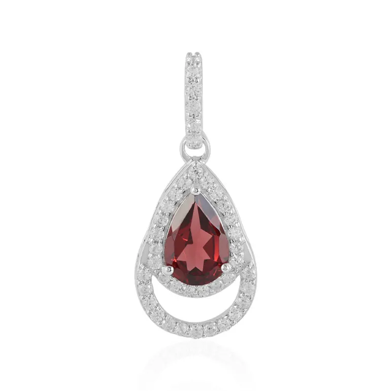 Entdecken Sie die zeitlose Anziehungskraft dieses prächtigen Mosambik-Granat-Tropfenanhängers, der mit einem wunderschön facettierten Granat von 1,126 Karat im Tropfenschliff geschmückt ist. Das tiefrote Herzstück wird von 40 funkelnden Zirkonsteinen umrahmt, die einen glitzernden Kontrast bilden. Dieser Anhänger aus glänzendem 925er Sterlingsilber zeugt von Eleganz und ist das perfekte Accessoire für Abende oder besondere Anlässe. Lassen Sie dieses auffällige Stück zu einer exquisiten Ergänzung Ihrer Sammlung werden.