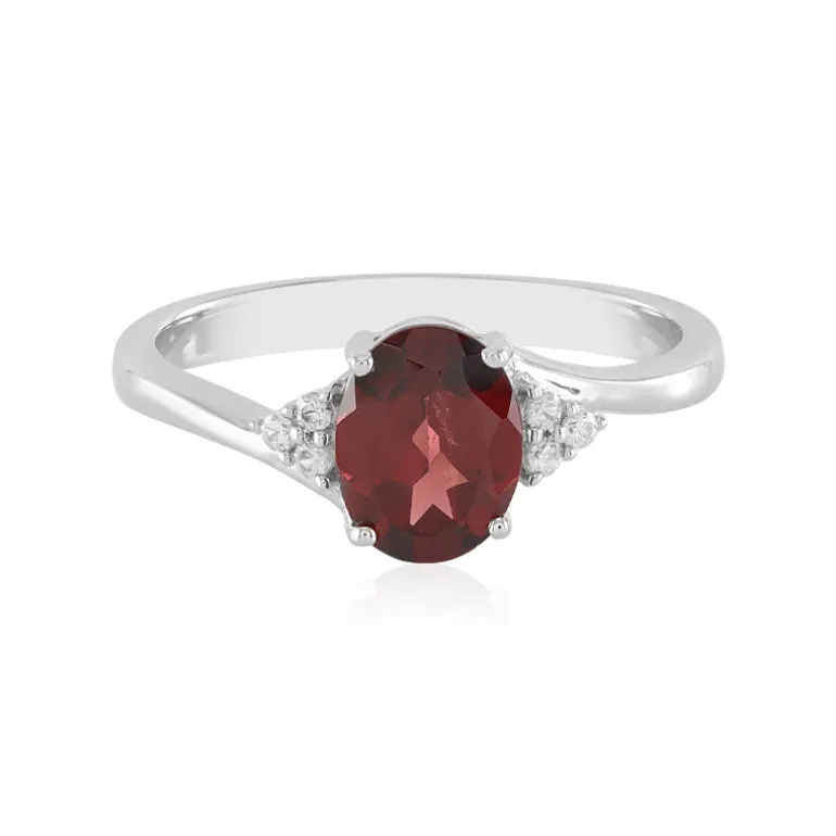 Entdecken Sie die Faszination dieses Rings aus Sterlingsilber mit einem atemberaubenden Granat von 1,722 Karat aus Mosambik im glänzenden Ovalschliff, flankiert von funkelnden Zirkonen aus Kambodscha. Das mit Platin plattierte Schmuckstück wiegt etwa 2,84 Gramm und besticht durch sein raffiniertes Design mit den Maßen 23 x 20 mm. Ideal, um Ihr tägliches Ensemble aufzuwerten oder besonderen Anlässen einen Hauch von Eleganz zu verleihen.