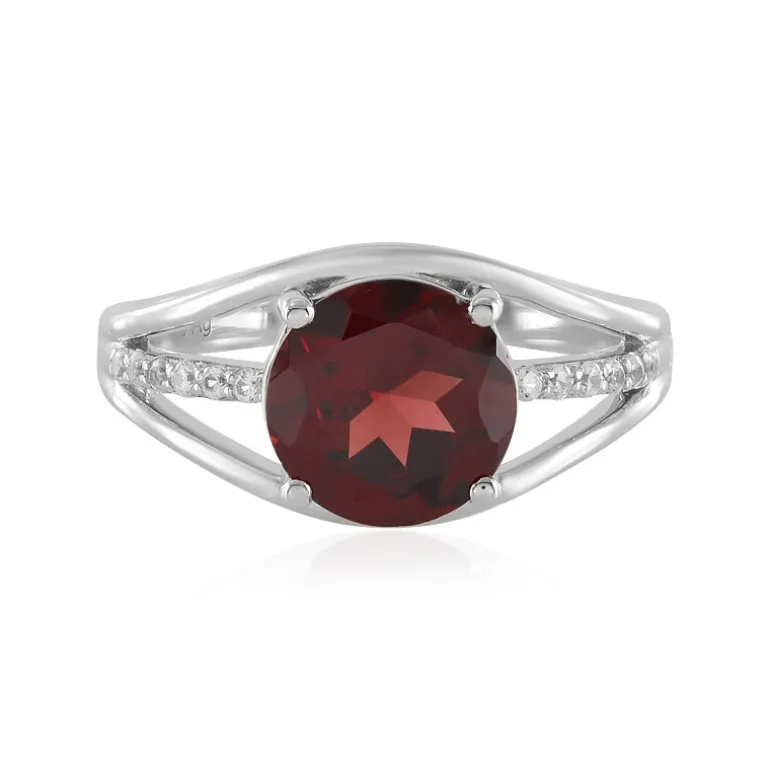 Dieser Ring besticht durch seine tiefrote Ausstrahlung. In der Mitte glänzt ein Mosambik-Granat mit 2,59 Karat, der von funkelnden kambodschanischen Zirkon-Akzenten mit insgesamt 0,16 Karat umgeben ist. Dieser sorgfältig aus platiniertem 925er Sterlingsilber gefertigte Ring ist ein großartiges Statement. Er eignet sich sowohl für den eleganten Alltag als auch für den glamourösen Abend. Er passt perfekt zu einem klassischen kleinen schwarzen Kleid oder verleiht Ihrer Bürokleidung einen Hauch von Farbe.