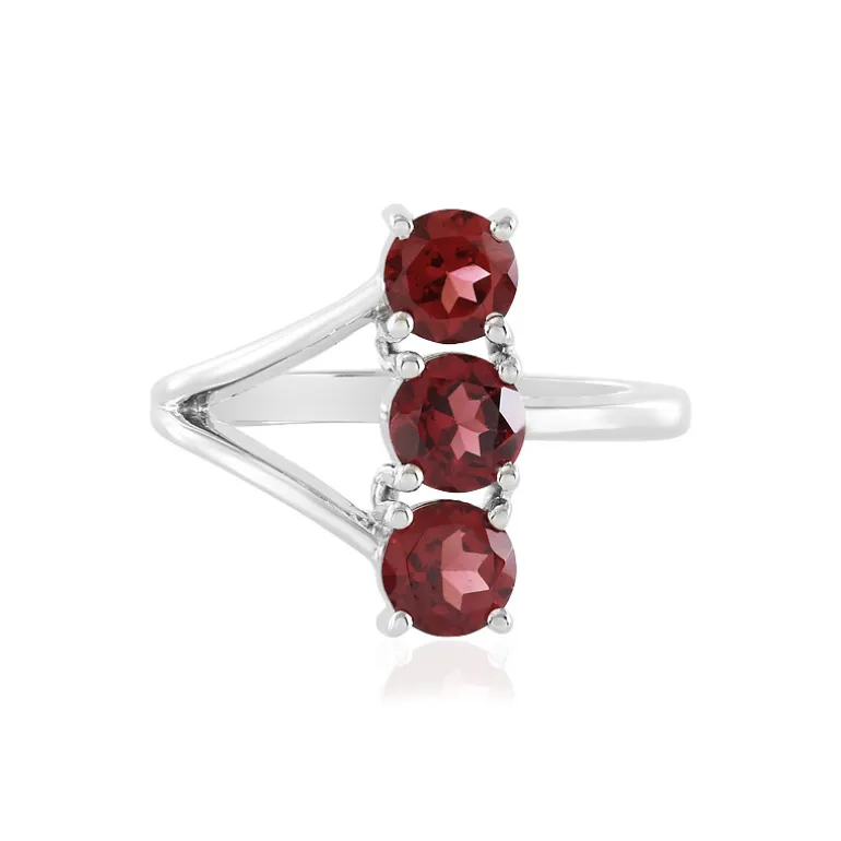 Dieses auffällige Schmuckstück besteht aus einem Trio tiefroter Mosambik-Granate, die perfekt rund geschliffen und in ein elegantes, platiniertes 925er Sterlingsilberband gefasst sind. Die Steine haben insgesamt 1,513 Karat, fangen das Licht bei jeder Bewegung ein und bieten einen Farbakzent für jedes Ensemble. Dieser Ring eignet sich sowohl für legere als auch für formelle Anlässe und verleiht jedem Outfit einen Hauch von Eleganz. Verleihen Sie Ihrer Schmucksammlung einen Hauch von Eleganz mit diesem zeitlosen Granatring.