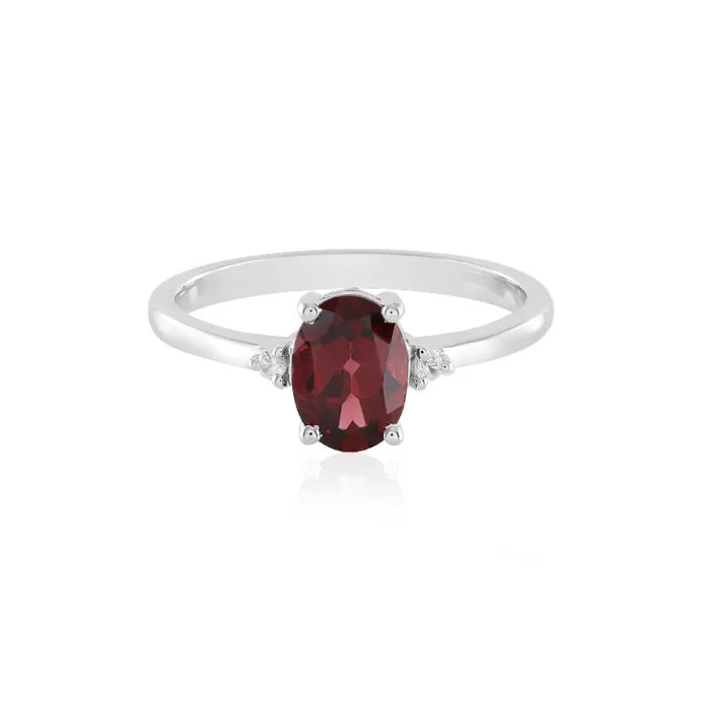 Entdecken Sie die Eleganz dieses Mosambik-Granat-Silberrings, der durch zwei kambodschanische Zirkon-Akzente akzentuiert wird. Der zentrale Granat mit 1,196 Karat und ovalem Schliff strahlt einen tiefroten Farbton aus, der die Essenz der Raffinesse einfängt. Das platinierte Stück aus 925er Sterlingsilber wiegt etwa 1,74 Gramm und wird durch einen Zirkon im Rundschliff mit 0,042 Karat ergänzt. Dieser Ring ist so vielseitig wie atemberaubend und eignet sich perfekt, um der Alltagskleidung einen Hauch von Luxus zu verleihen oder die Abendgarderobe aufzuwerten.