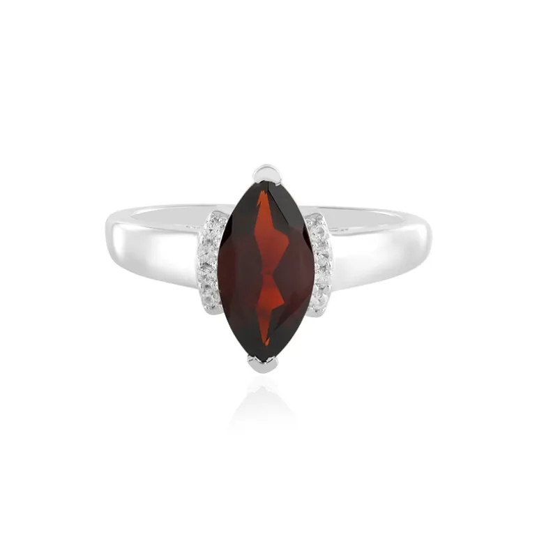 Hüllen Sie Ihren Finger in den Charme unseres raffinierten Granat-Silberrings aus Mosambik. Dieses Schmuckstück besticht durch einen 3,02-karätigen Granat im Marquiseschliff, der von schimmernden Zirkon-Akzenten im Rundschliff aus Tansania umrahmt wird. Der Ring ist aus glänzendem 925er Sterlingsilber gefertigt und mit Platin veredelt, was ihm einen Hauch von Luxus verleiht. Mit einem Gesamtgewicht von 3,178 ct ist er ein perfektes Statement für besondere Anlässe oder alltägliche Eleganz. Kombinieren Sie ihn sowohl mit legerer als auch mit formeller Kleidung, um Raffinesse auszustrahlen, wohin Sie auch gehen.