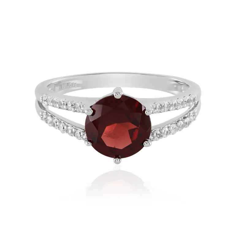 Dieser atemberaubende Ring besteht aus einem Mosambik-Granat im Rundschliff von 2,922 Karat, der für seinen tiefroten Farbton bekannt ist, und 24 funkelnden kambodschanischen Zirkonen im Rundschliff von insgesamt 0,479 Karat. Gefertigt aus 925er Sterlingsilber mit einer luxuriösen Platinbeschichtung, verbindet dieser Ring klassische Eleganz mit moderner Raffinesse. Er ist das perfekte Accessoire sowohl für legere als auch für formelle Anlässe und verleiht jedem Outfit einen Hauch von Raffinesse.
